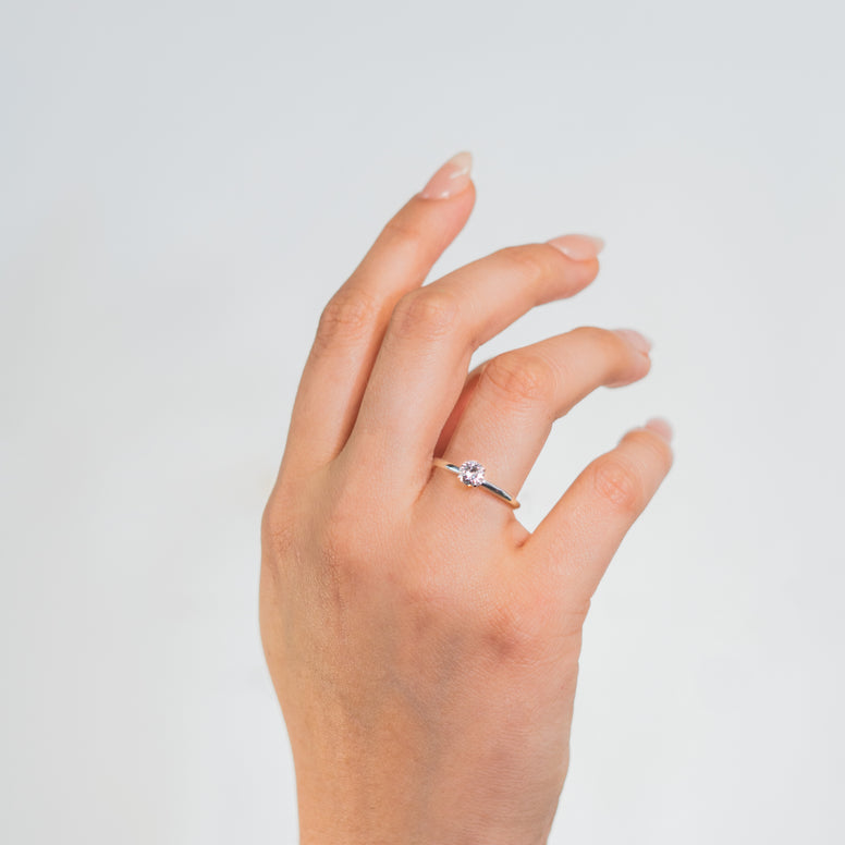 Victoria es un solitaire clásico en oro blanco con un diamante redondo central que flota sobre una banda fina y pulida. Su diseño minimalista resalta al máximo el brillo de la piedra, creando una pieza elegante y atemporal, perfecta para quienes buscan un anillo de compromiso delicado y sofisticado.