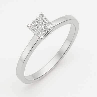 Este anillo solitario en oro blanco destaca por su diseño limpio, moderno y perfectamente equilibrado. La banda, de grosor medio y bordes ligeramente planos, aporta una apariencia sólida y contemporánea que realza la geometría del diamante central. La piedra, un diamante talla princesa, está montada en una montura de cuatro garras que realza su forma cuadrada y permite que la luz se refleje en cada faceta con máxima intensidad. El brillo frío del oro blanco complementa de manera impecable los destellos cristalinos del diamante, creando una pieza atemporal, sofisticada y llena de carácter. Ideal para quienes buscan un anillo elegante, moderno y con una personalidad definida.